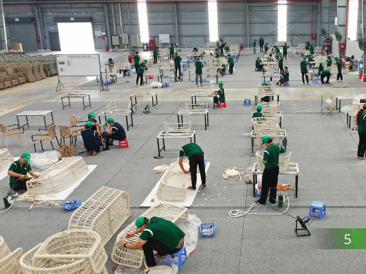 In our Mekong Delta factory, we focus on producing mixed media outdoor furniture, combining materials like aluminum, steel, wood, fabric and cushions to deliver high-quality products. Phase 01 in white is set to be completed in January 2025, Phase 2 (in grey) will be completed at the end of 2025.